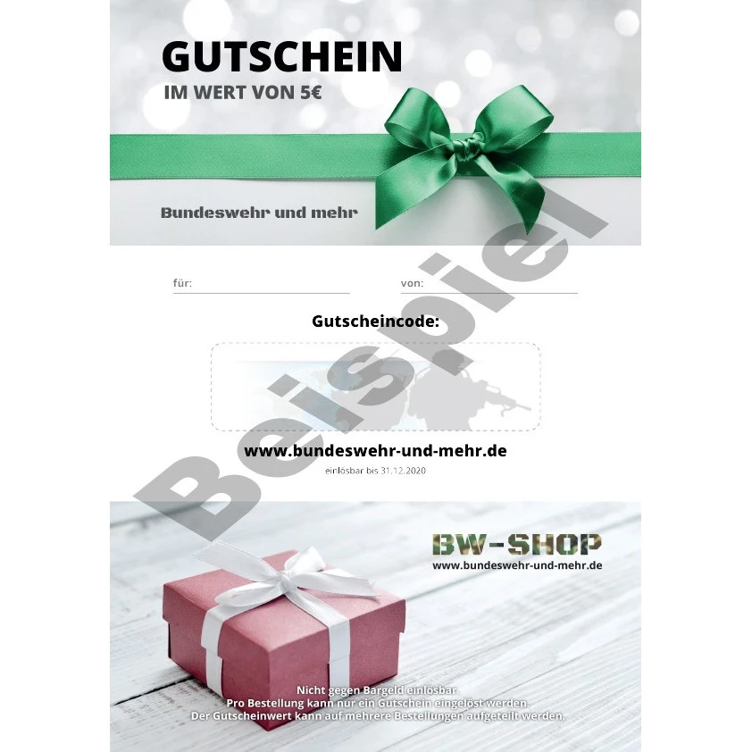 Überraschen Sie Familie & Freunde mit unserem Geschenkgutschein den es wahlweise in unserer Militär oder Neutralen Optik mit unterschiedlichen Beträgen gibt.