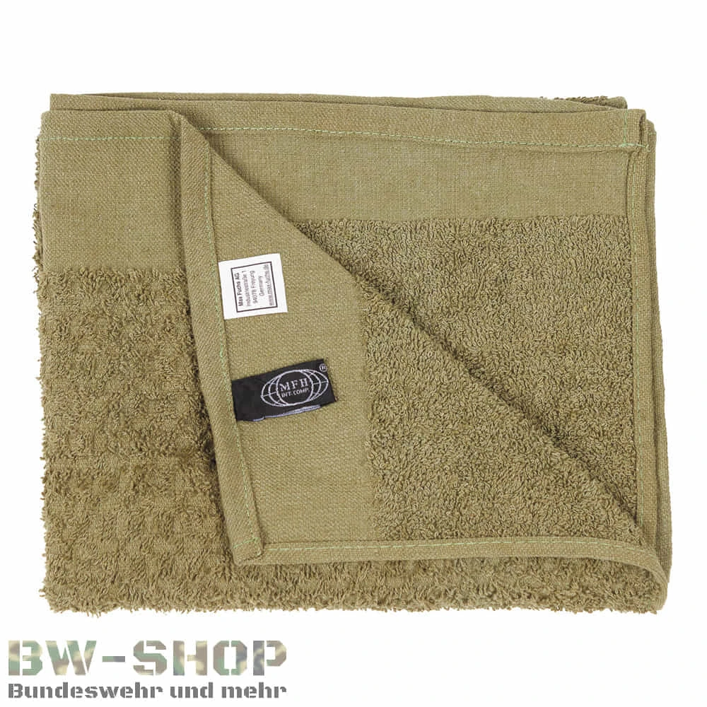 Die bewährten Bundeswehr Handtücher mit weichem Frottee-Stoff. Sie besitzen eine angenehme Oberfläche und sind sehr strapazierfähig. Damit macht sich dieses Handtuch zu Ihrem absoluten Lieblingsstück.