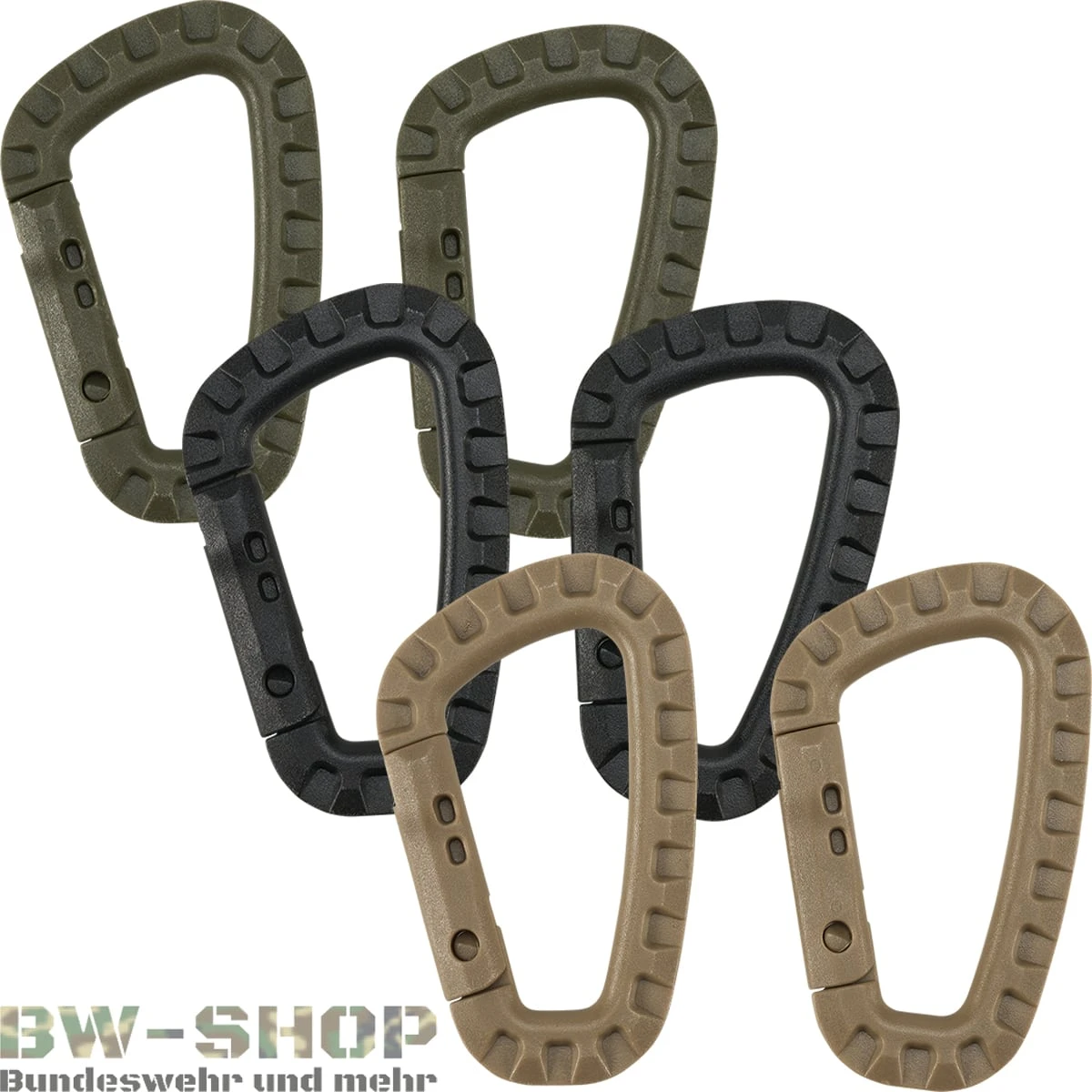 Robuste und strapazierfähige Karabiner im 2er Pack, die auch bei der Bundeswehr und anderen Armeen zum Einsatz kommen. Perfekt, um verschiedene Ausrüstung einzuhängen und zu transportierten. Ideale Carabiner mit großer Öffnung im flachen Design, die perfekt für Molle Schlaufen geeignet sind.
