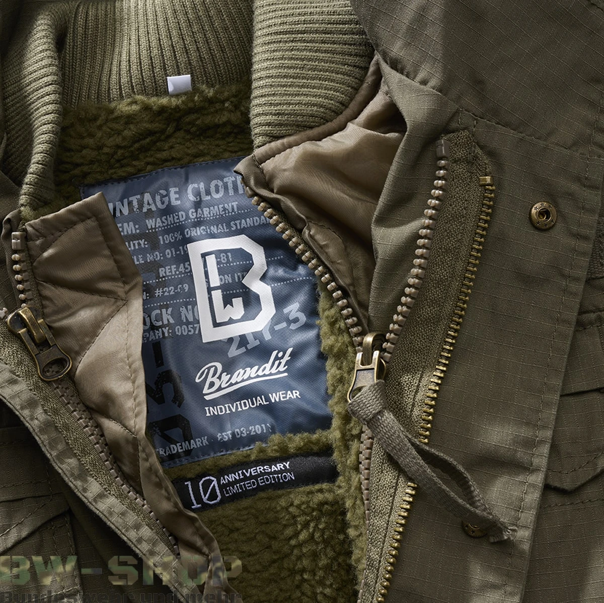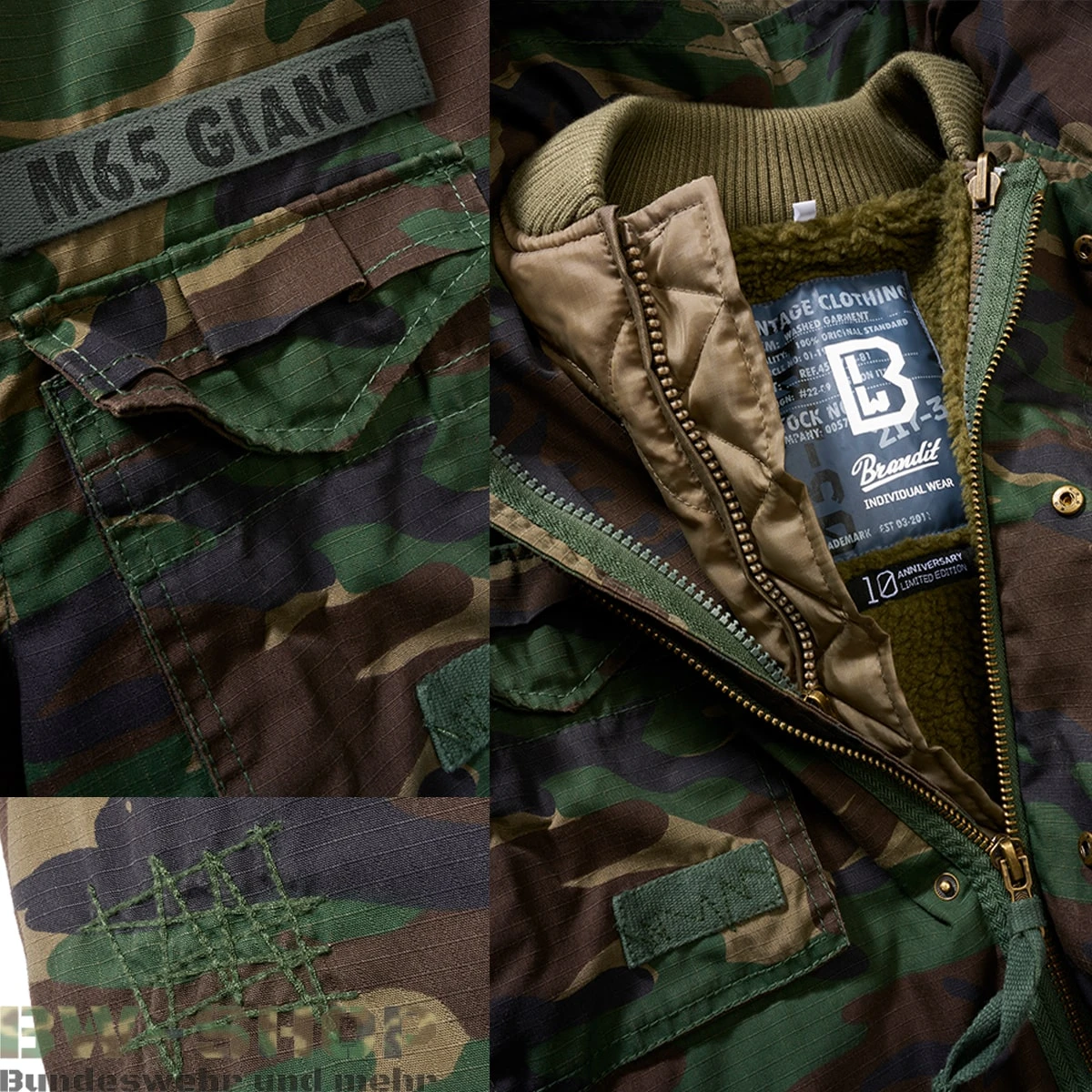 - speziell angefertigte Premium M-65 Jacke Giant in der Limited Edition von Brandit