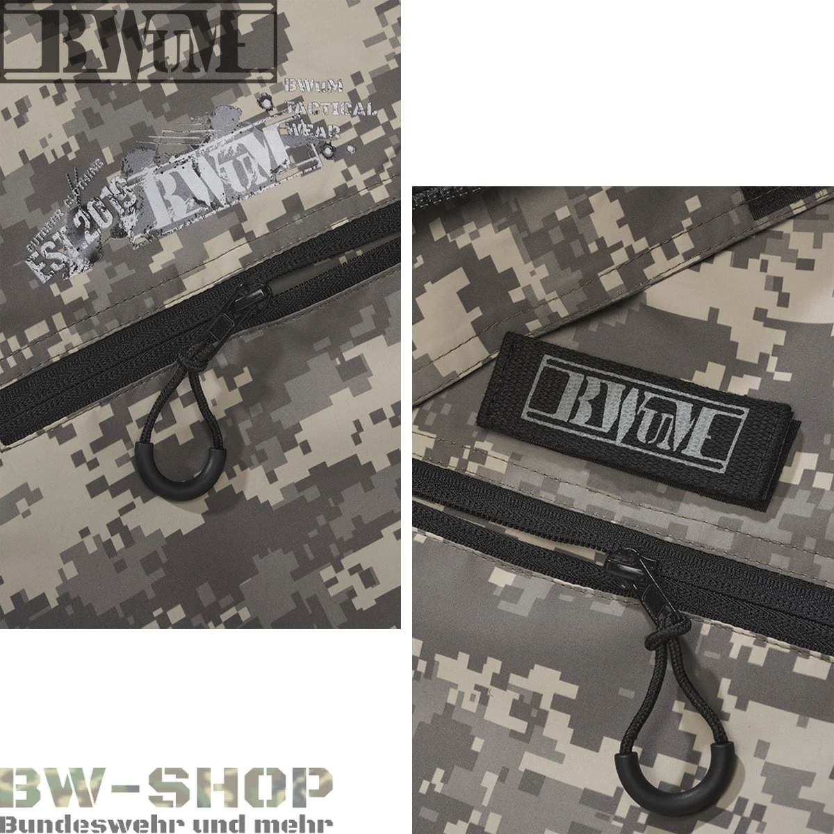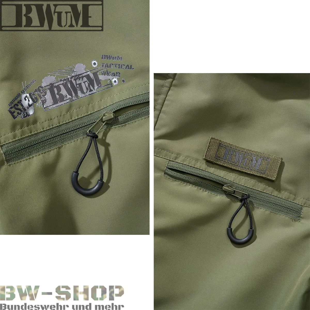 Unser neuester Windbreaker kreiert im taktischen Design, mit liebevollen Details den es in dieser Aufmachung bisher auf dem Markt nicht gibt. Der BWuM Tactical Windbreaker schützt Sie perfekt vor Nässe und bietet Ihnen viele Applikationen und Vorteile gegenüber einer normalen Windjacke. Die Besonderheiten bei dieser Jacke im Militärstil sind weitgehend, von Klettpatches auf den Oberarmen inkl. Deutschlandflaggen die abnehmbar sind durch Klett, Klettpatch auf der linken Brust mit unserem Logo das abnehmbar ist, unser Tactical Logo als qualitativ hochwertigen Druck auf der rechten Brust bis hin zu taktischen Reißverschlüssen und Ärmelsaum als Abschluss.