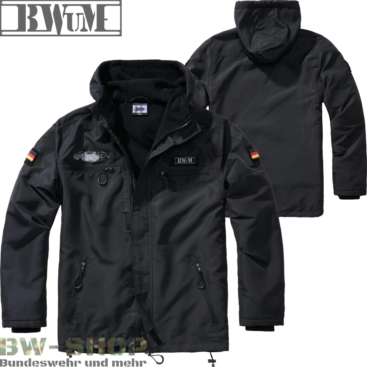 BWuM Tactical Windbreaker in der Winterausführung (Fleecefutter) mit Frontreißverschluss, Patch und Flaggen