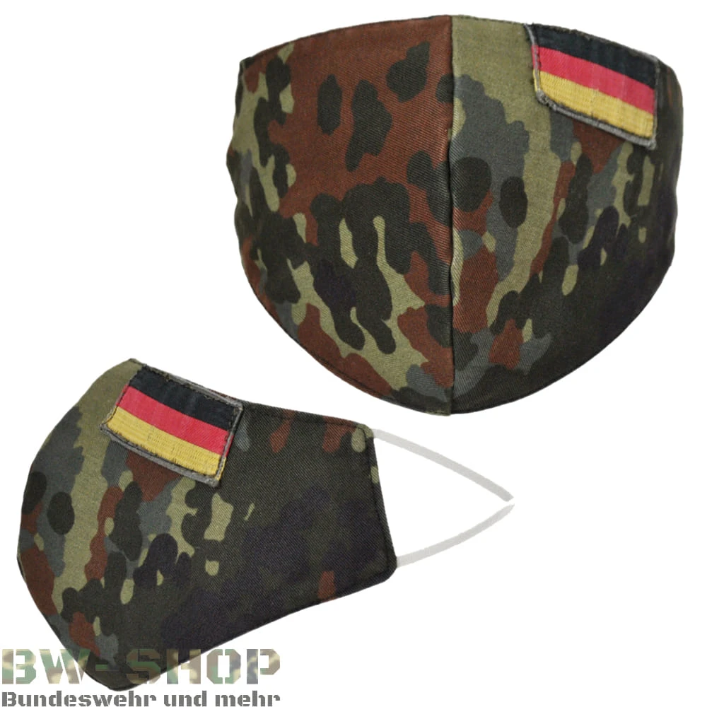 Diese Mund- und Nasenmaske im Stil der Bundeswehr wurde für Sie als modisches Gesichtstextil entwickelt. Die Innenseiten der Masken sind aus reiner, angenehm zu tragender Baumwolle in einem dezenten schwarz und waschbar. Sie eignen sich perfekt als Mund- und Nasenbedeckung und geben Ihr ganz eigenes Flair durch den Militärstil in Flecktarn oder Wüstentarn mit oder ohne Flagge.