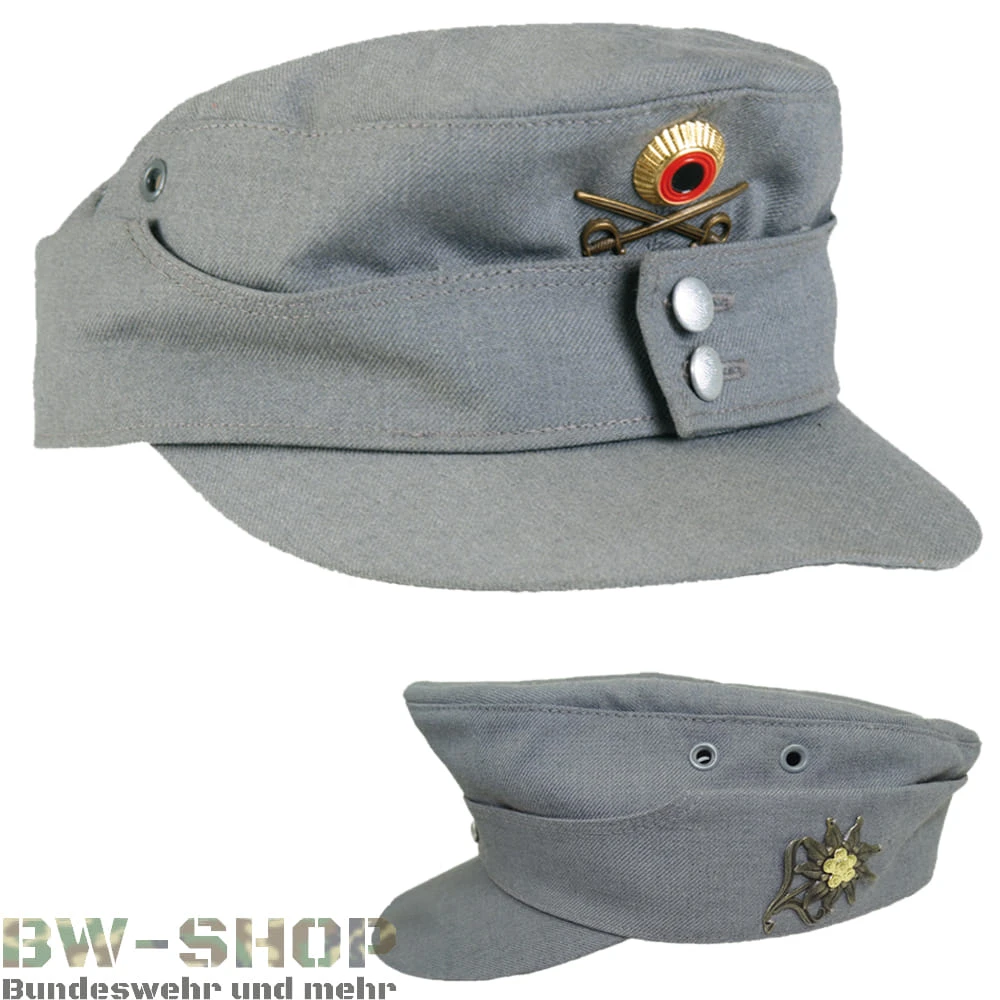 Alt bekannte Schirmmütze der Bundeswehr Gebirgsjäger. In Form und Aussehen ähnelt diese noch der Feldmütze M43 aus dem 2. Weltkrieg. Sie ist robust und praktisch durch die herunter klappbaren Ohrenteile. Außerdem bietet sie einen angenehmen Tragekomfort und ist ein echter Hingucker mit den Abzeichen wie Edelweiß, Kokarde und den gekreuzten Säbeln.