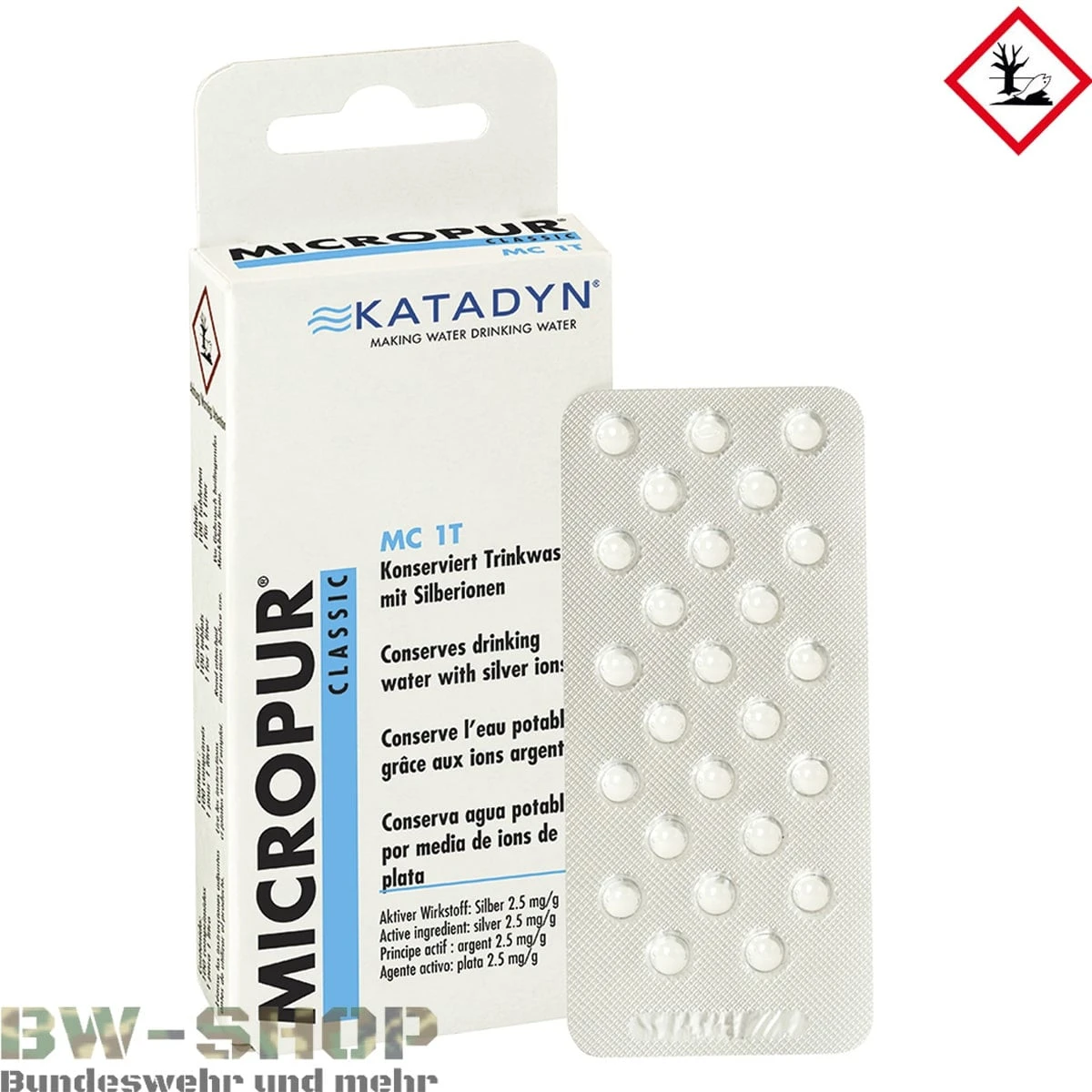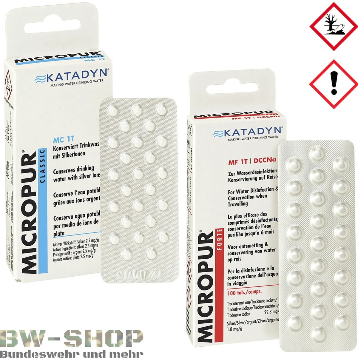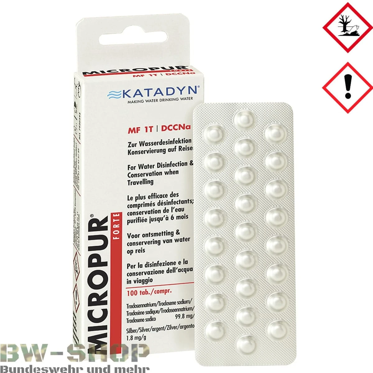 Wasseraufbereitungstabletten dich sich hervorragend für Camping, Outdoor und Trekking eignen, aber auch vom Militär wie der Bundeswehr für das Überleben im Freien verwendet werden. Wasserentkeimung in Form von Tabletten, die speziell angefertigt wurden, um lange bei Wassernöten, Katastrophen oder im Outdoorbereich überleben zu können. Eine Tablette reinigt 1,0L verschmutztes Wasser sicher und schnell. Je nach Produkt verwandeln Sie hiermit in 30 Minuten bis 120 Minuten Schmutzwasser zu sterilem Trinkwasser und dauert bis zu 6 Monate an. Risikolos Wasser trinken oder Zähne putzen durch eine perfekte Wasserdesinfektion.