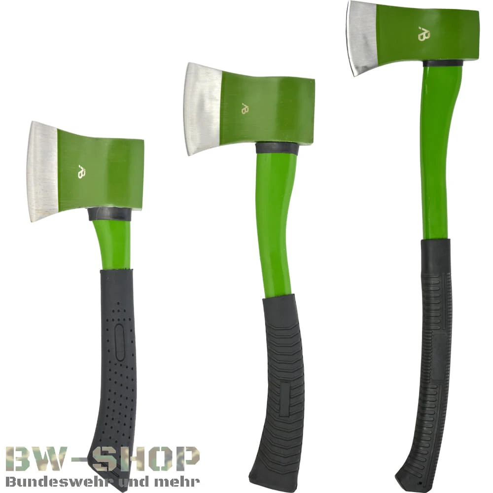Ideal für Camping und Outdooraktivitäten. Mit dieser robusten und handlichen Axt haben Sie einen treuen Begleiter und können Hindernisse und Baumstämme ohne Mühe zerkleinern. Der stabile Fiberglasstiel sorgt für extra Stabilität und der ergonomische Griff verschafft Ihnen ein perfektes Handling. Hier können Sie zwischen den 3 einzelnen Größen oder alle Größen als Set wählen, damit Sie auch für jedes Vorhaben die perfekte Länge griffbereit haben.