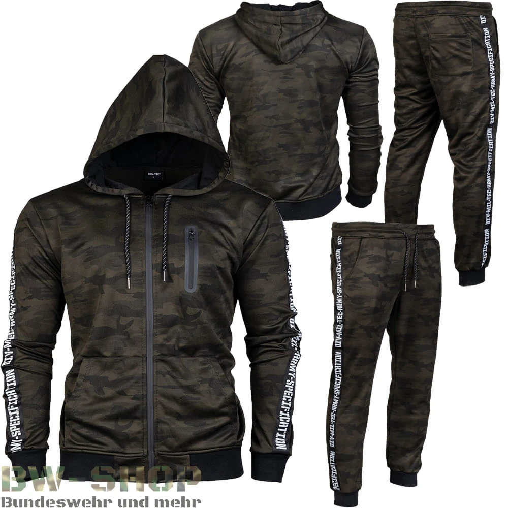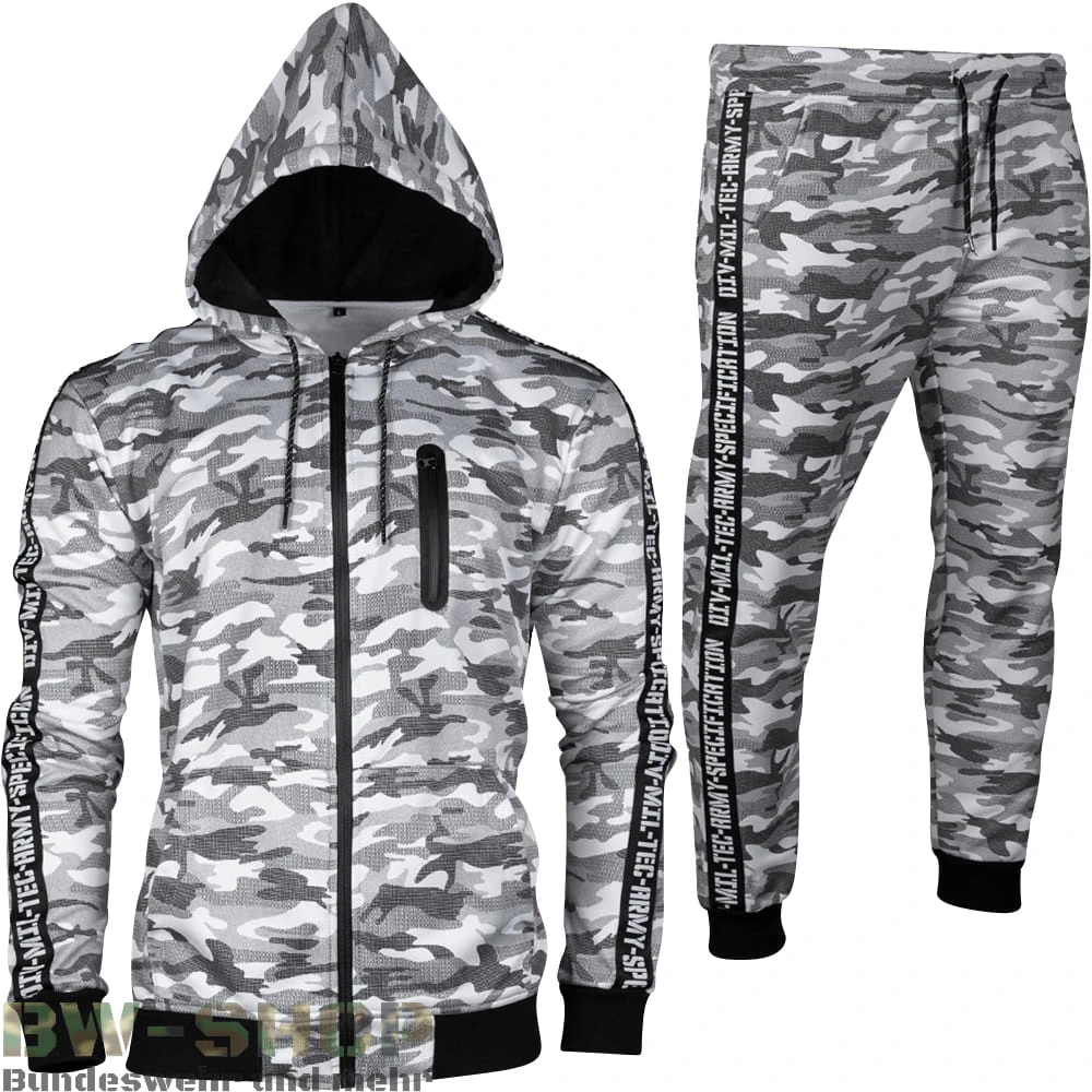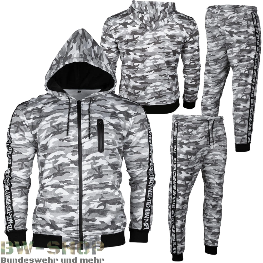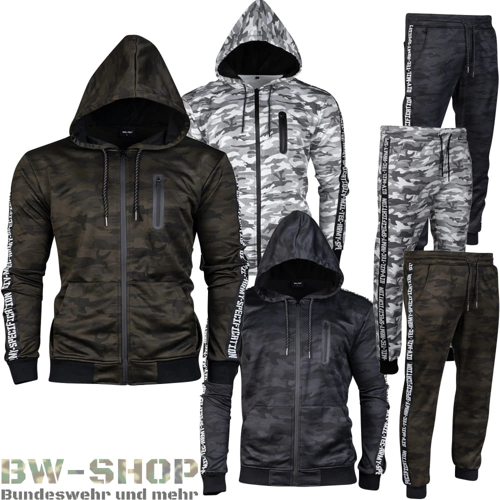 Die neue und moderne Army Trainingskleidung in hervorragender Camouflage Optik! Neben sehr guter Qualität und einem angenehmen Tragekomfort steht auch idealer Nutzen für sämtliche Sportaktivitäten nichts mehr im Weg. Die Jacken und Hosen können problemlos einzeln getragen werden oder natürlich auch als Set. Ebenso kann man die Jacken ebenso gut als normalen Freizeitpullover oder Hoodie nutzen und die Hosen auch als einfache Freizeit- oder Jogginghose. Da Sie die Produkte hier auswählen können (Jacke, Hose oder Set) liegt es in Ihrer Hand, wofür Sie sich entscheiden.