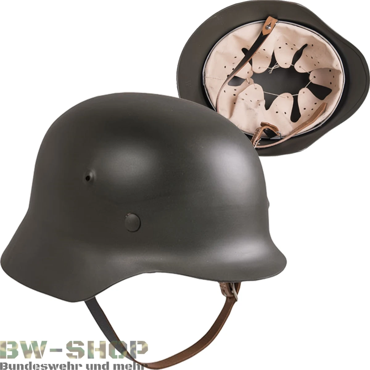 Reproduktion des Originalen Wehrmacht Stahlhelm M35 aus dem 2. Weltkrieg. Für Liebhaber der deutschen Geschichte oder zum Tragen bei Freizeitaktivitäten wie Paintball oder ähnlichem. Dieser Helm ist ein wahrer Hingucker, da das Design und die Form identisch dem Original Stahlhelm aus der alten Zeit nachempfunden wurde. Der Helm ist durch die Stahlglocke robust und lässt sich durch den Kinnriemen perfekt am Kopf anpassen.