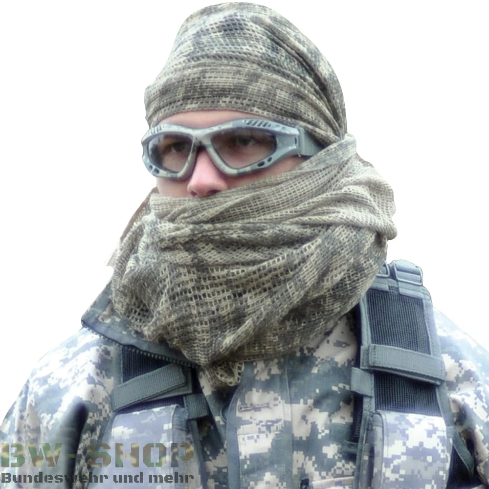 Universell einsetzbarer Netzschal zur Tarnung, als Sichtschutz oder gegen die Kälte.