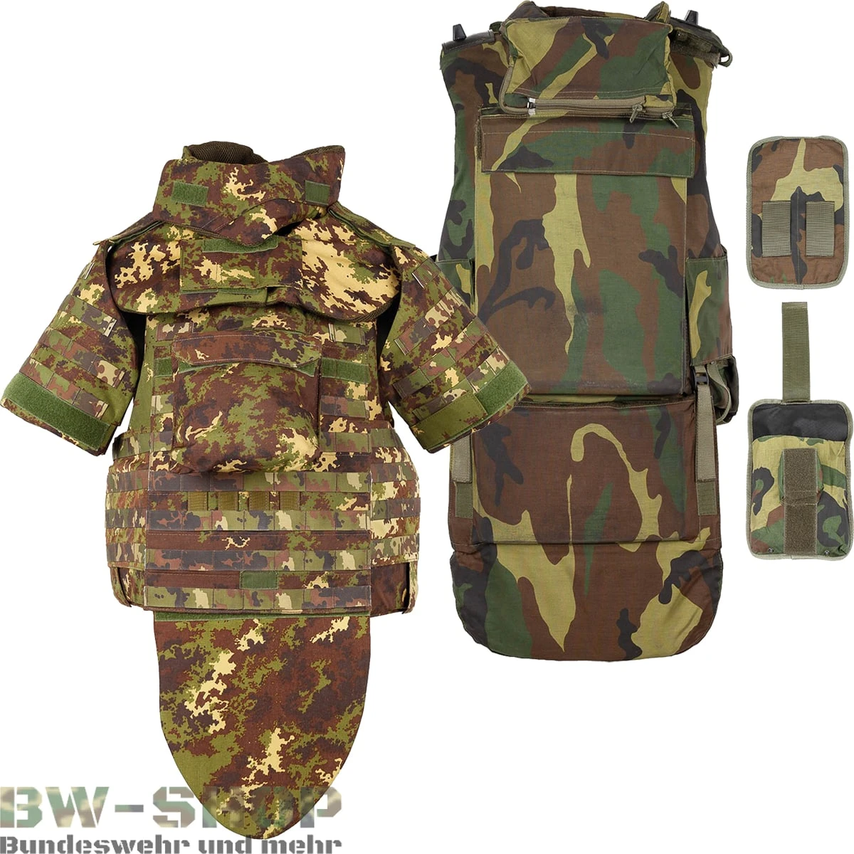 - Weste in Farbe Woodland besitzt 4x ballistische Harteinlagen (keine Keramik) und 4x ballistische Weicheinlagen (Kevlar)