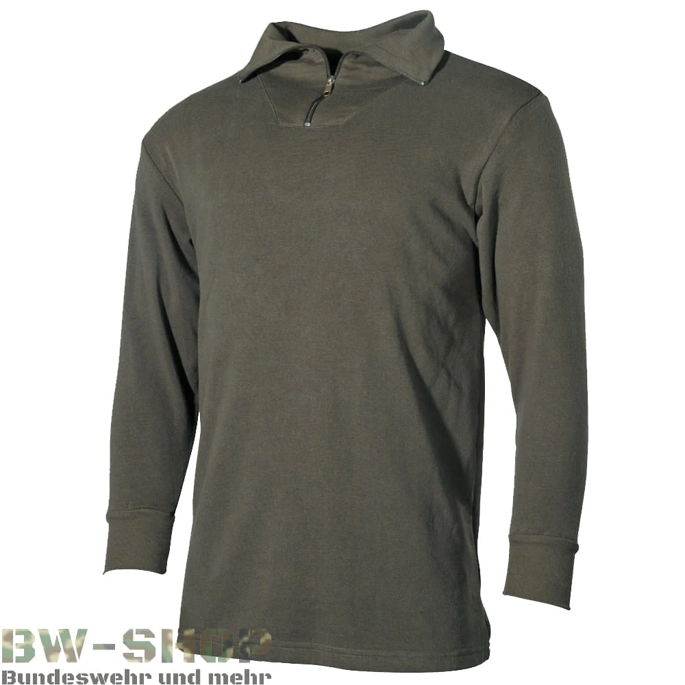 Der Originale Bundeswehr Rolli, der im schlichten Design ein wahrer Allzweck Rolli mit sehr angenehmen Tragekomfort ist. Er besitzt einen hohen Kragen mit Reißverschluss und besteht aus einem reiner Baumwolle. Er ist elastisch, reißfest und extrem strapazierfähig. Ideal für jeden Gebrauch.