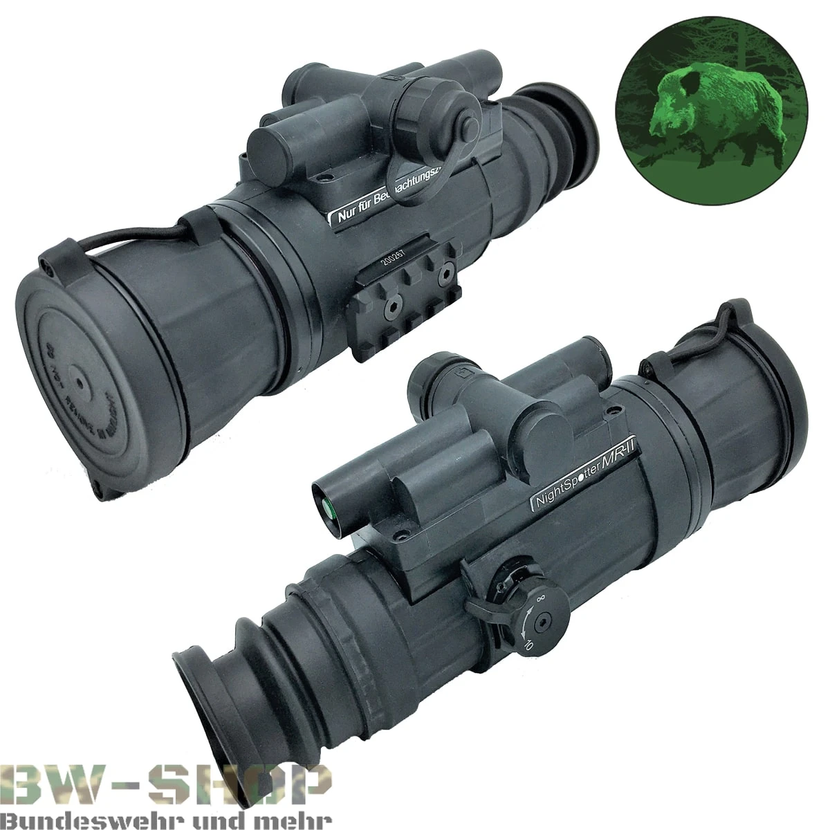 Das Nightspotter MR Gen 2+ Vorsatzgerät ist ein Nachtsichtgerät zur Montage an Ihrem Fernglas, Monokular, Zielfernrohr oder Okular. Es wird einfach vorne an das Objektiv Ihrer bewährten Tageslichtoptik montiert und produziert ein grünes Bild im Dunklen.