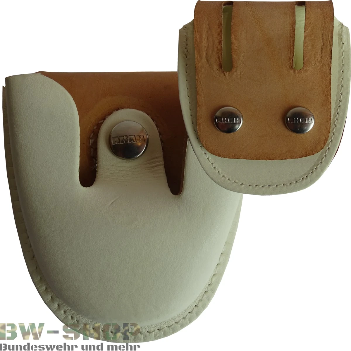 Hochwertige AKAH Handschellentasche Leder in Weiß aus Lagerbeständen der deutschen Polizei. Die Taschen sind aus reißfestem Rindsleder mit sehr guter, stabiler Qualität. Durch den stabilen Druckknopfverschluss ist ein sicheres Unterbringen der Handschelle in der Tasche gegeben. An der Rückseite der Tasche befinden sich ebenfalls zwei stabile Druckknöpfe und eine weite Gürtelschlaufe, um die Handschellentasche optimal am Gürtel oder an einer Koppel anzubringen. Die passenden Polizei Ledergürtel in Weiß finden Sie ebenfalls bei uns.