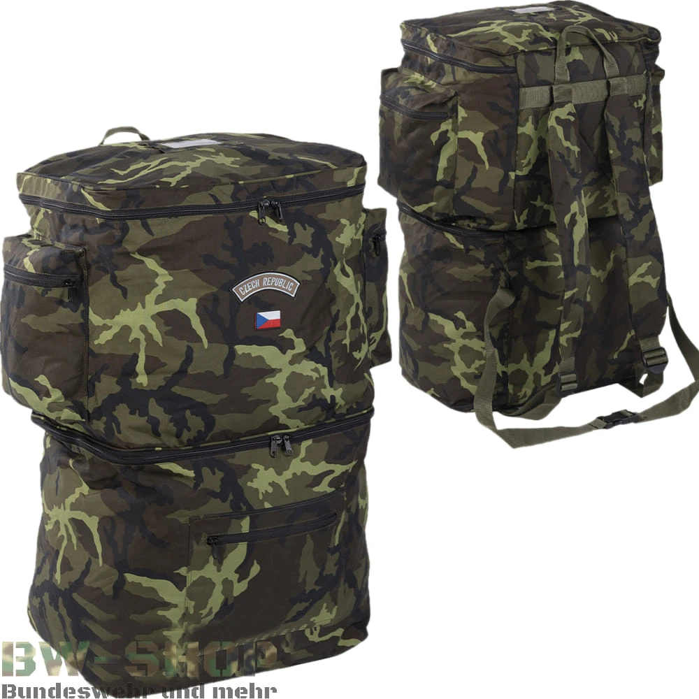 Originaler Kampf-Tragerucksack der Tschechischen Armee mit extrem viel Stauraum. Der Rucksack ist in zwei Hälften mit einem Reißverschluss geteilt, wobei jede Hälfte ca. 45L fasst. Er ist durch seinen speziellen Stoff extrem strapazierfähig und durch die Innenbeschichtung außerdem wasserfest.